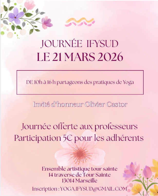 L’association régionale IFY Sud organise une journée de yoga le 21 mars à Marseille avec Olivier Castor, formateur IFY.