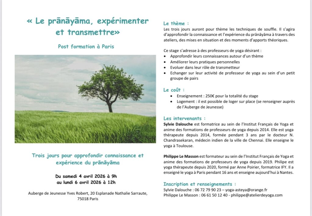 Post formation « Le prānāyāma, expérimenter et transmettre »