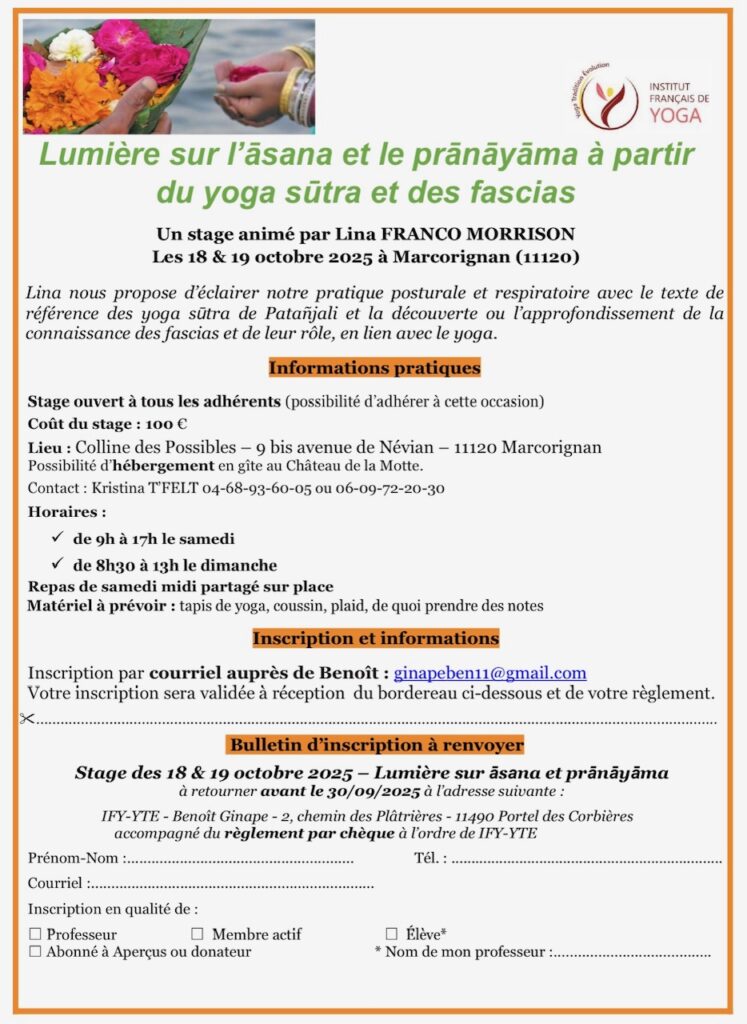 Stage de Yoga avec Lina Franco Morrison les 18 et 19 octobre 2025 à Marcorignan