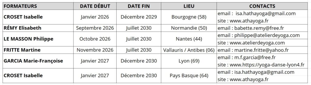 La formation comprend 500 heures réparties sur quatre années conformément au cadre défini par l’IFY et l’Union européenne de Yoga.